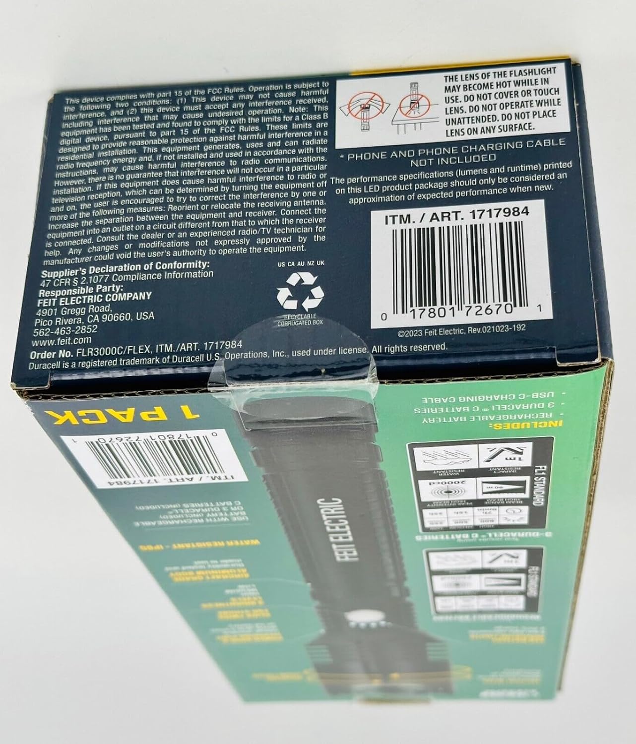 Master the dark and be ready for anything with the Feit Electric FLR3000C/FLEX Rechargeable Plus Flashlight. This robust flashlight is crafted from durable aircraft-grade aluminum and features a special coating to resist rust and corrosion. It comes with a rechargeable battery and USB-C charging cable, and can also run on C batteries for versatility. This handheld flashlight offers multiple brightness levels, outputting up to 3000 lumens with a 3.5-hour runtime, 1500 lumens for 5 hours, or 700 lumens for up to 12 hours. Additionally, it functions as a power bank for your devices in emergencies. Opt for a reliable, water-resistant flashlight for your next task or adventure with Feit Electric.