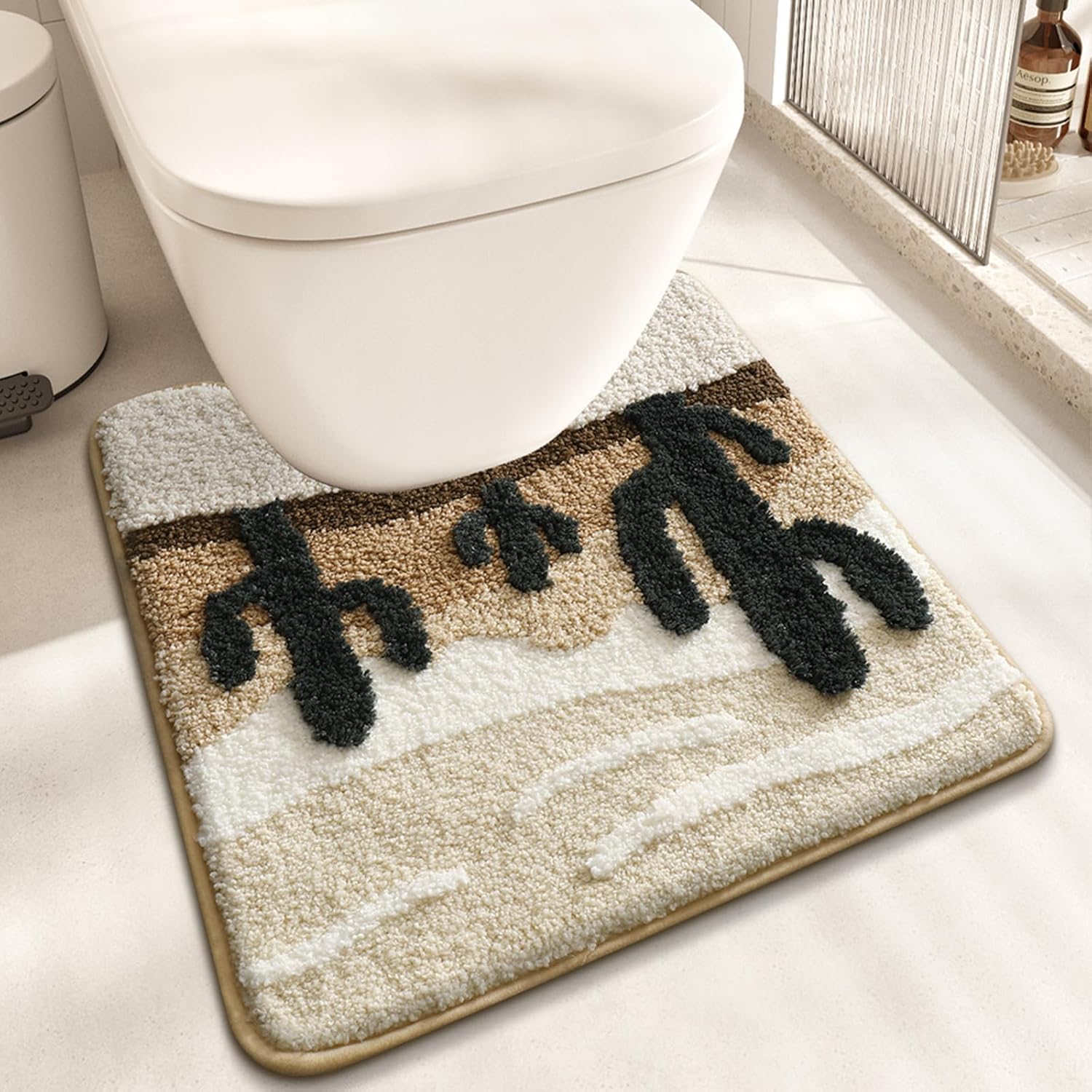 Features: Stunning Desert Theme: Bring the warmth and beauty of a desert sunset into your home. This mat features detailed cacti, mountain silhouettes, and a glowing sun, adding a unique and stylish look to any space. Practical & Comfortable: The thick, absorbent pile quickly soaks up moisture and provides a soft, comfortable feel. Its non-slip base ensures stability, making it both safe and functional. Easy to clean: You can use the shower head for cleaning, or use the washing machine for cold water cleaning, low temperature drying or natural air drying. Specification: Material: Polyester fiber Color: Brown Shape: Rectangular Style: Nature-Themed, modern Size: 20 x 31.5 inch (50x80cm) Weight: 0.8kg About Cleaning: The product has been tested for many times and is durable. In order to keep clean, dust on the surface of the floor mat should be removed regularly with a vacuum cleaner. It is recommended to wash by hand, which can keep the shape and color unchanged for many years. Please use gentle mode when washing by machine. Packages Included: 1 x Bath Mat Notice: Due to the fact that the carpet is packaged in vacuum folded, please lay the carpet flat when you receive it, you can press it with your hands or feet, after it be used for a few days, the creases in the carpet will return to being flat. Due to the difference in shooting angle and light, there may be subtle chromatic aberration, please understand. Quality & Service: Thank you for your interest in Wrewing, your support, and help as we move forward. If you have any questions about this product, please feel free to ask us as soon as possible. We will respond and solve your problem within 24 hours. Best wishes to you and your family.