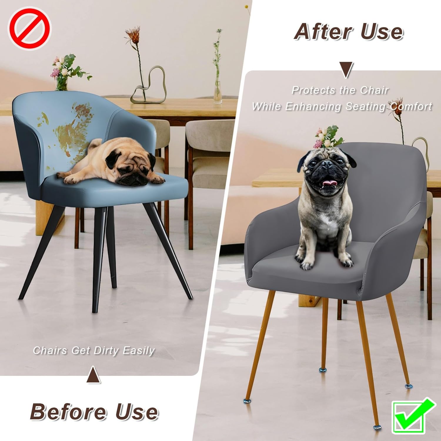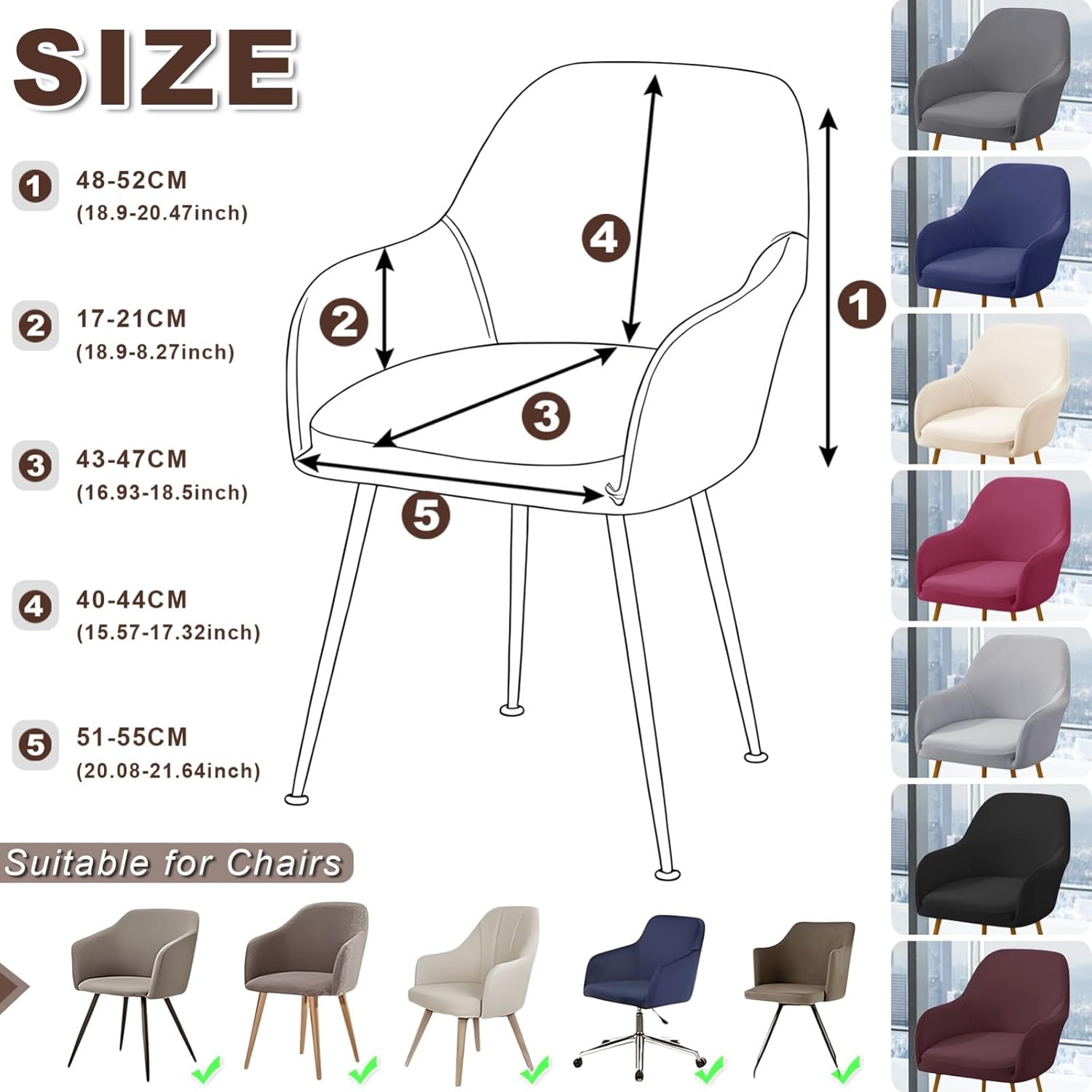 Product DescriptionThe all-inclusive design has no dead ends, and the all-inclusive package makes the protection more reliable. The thick and densely woven fabric can not afford the ball and shed hair. It is easy to install and take off, machine washable, best partner for household life.Material:The Curved Back Chair Cover is Made of 85% polyester and 15% spandex. Soft and Comfortable, Natural Environmental and ECO friendly, Highly elastic fabric makes this stylish bench cover fit for most types of benches easily,Easy to Clean.The Curved Back Chair Cover Use Unique Stretch Fabric, protects your Dining room chairs from unexpected stains. Available in different colors and patterns design to match any interior.Our curved back accent dining chairs fit the Back height: 15.57-17.32 inches (48-54CM); seat length: 16.69-18.5 inches (43-47cm); seat width: 18.9-21.26 inches (48-54CM). Please measure your kitchen chair before choosing our chair covers.Machine Washable: Machine wash in cold, tumble dry on low temperature. Do not iron, do not bleach, and avoid washing it with sharp items to extend the product service life,Removable Beach covers can be washed hundreds of times and no wrinkles. Easy install and take off to wash.100% Brand new and high qualityStyle:modern american