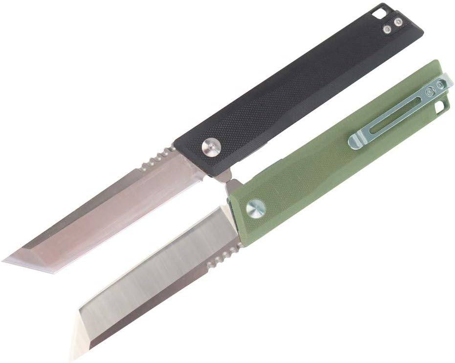 Knife unfolding length: 19.8CM, Tool handle length: 11.4cm Blade length: 8.4CM Handle thickness: 1.3CM, handle width: 2.2CM Weight: 97G Blade material: 9cr, Hardness: 59-60HRC The material of the handle: G10. (Black/Army Green)