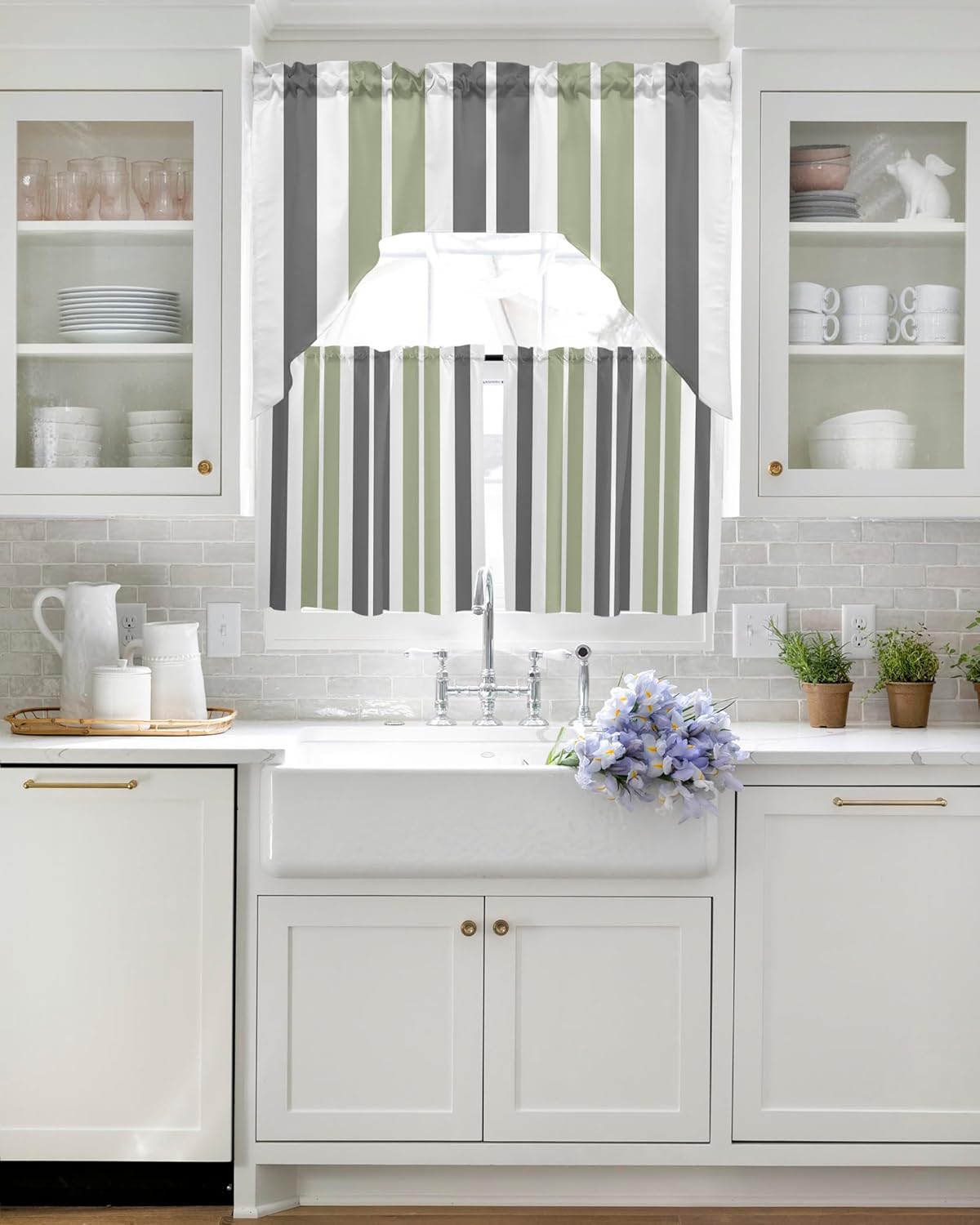 Widely Used: Our universal swag and tier curtain set is highly recommended by many customers as home decoration items.Beautiful and practical rideaux de chambre decoration are not only used in kitchens, bedrooms, dining rooms, living rooms, bathrooms, but also match other occasions, such as home office, laundry room, kids room, nursery, balcony, classroom, pet room, guest room, playroom, study room, washroom, coffee shop, cafe shop and more.Ideal Gift: Are you still worried about what gift to give for Christmas, Halloween, Thanksgiving, Independence Day, Mother's Day, Father's Day, Housewarming, Valentine's Day, St. Patrick, Easter, New Year? Why not take a look at our charming kitchen cafe curtain set, classic designs perfect for gifting to family, friends, colleagues and neighbours, etc.Various Styles: Our window drapery can perfectly match the style of your home.We have retro pastoral style, country farmhouse style, simple modern style, European aristocratic style, romantic French style, etc.Optional Colors: Bright colors are an important part of kitchen curtains sets for windows clearance.We have black, white, grey, red, brown, silver, beige for adults and pink, green, orange, blue, yellow, rainbow, multi-color for kids.Tip: Due to everyone uses different light or monitors, there may be a slight error in the color of the window curtain panels. Don't affect the beauty and use of the product.Just rod pocket curtains, no rods.