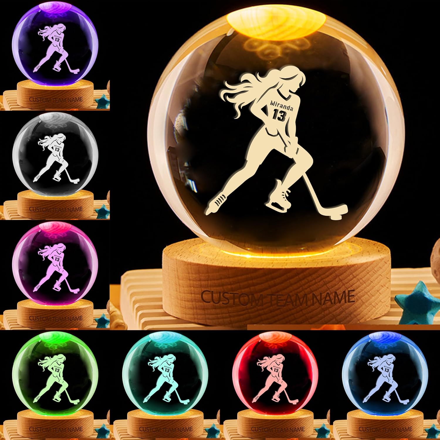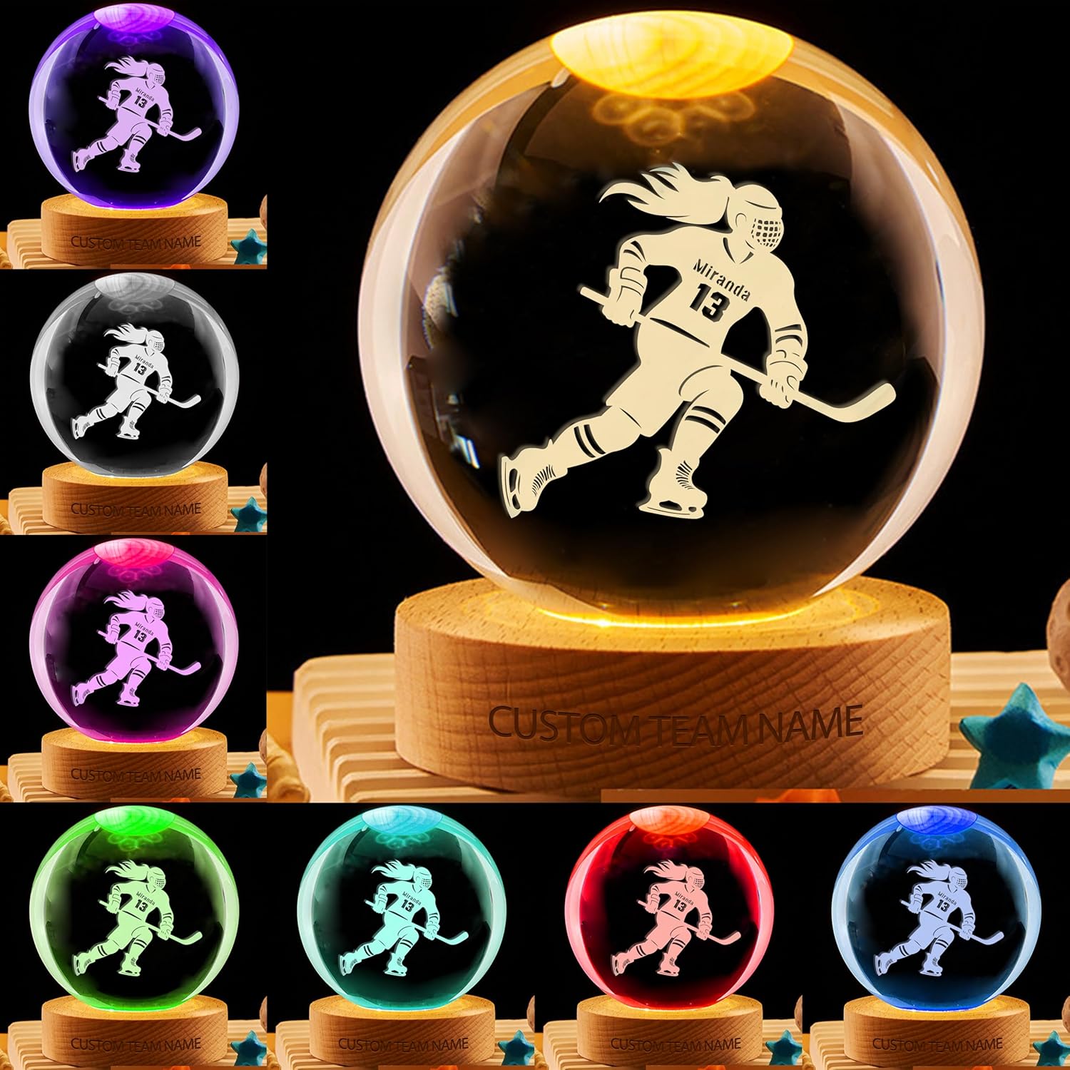 Personalized Crystal Light: Click "Customize Now" to design your own name pattern light up sport crystal ball ,add name and number,in addition,our crystal ball wooden base can be customized with text. It will be a great gift.The base with LED lights allows this name crystal ball to be used not only as a soothing night light, but also to bring a peaceful and harmonious light enjoyment to the family. The soft light emitted by the crystal ball will undoubtedly create an extremely warm atmosphere for the entire environment Materials : This ball is made of crystal materia,the wooden base provides a stable support for the crystal ball.This ball ornament features an LED light that illuminates the sport pattern, adding a magical touch to your home decor Uses: This personalized name light can be used as a night light for lighting, or as a room decoration, it is a multi-functional night light. Hurry up and design your own unique crystal night lamp! This sport globe light is an excellent gift for a family member, friend, or coworker celebrating a holiday, housewarming, birthday, or another special occasion Versatile Decoration: Our neon signs are perfect for bedrooms, bars, offices, clubs, dorms, and game rooms. It adds a cool style to any environment, creating a trendy and vibrant atmosphere Sport Lover Gift: Ideal as a personalized gift for birthdays, graduation, party, Thanksgiving, Christmas, and Valentine's Day for ball players, sports fans.Great gift to a new homeowner, good friends, established or young family.If you are looking for a unique gift for the sports fans in your life, our ball neon light is the perfect surprise that they will love