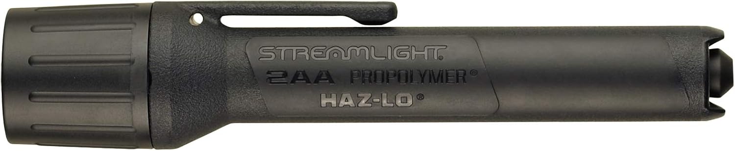Product Description This small handheld flashlight is durable, waterproof and intrinsically safe. It also uses affordable, easy-to-find alkaline batteries. C4 LED delivers 65 lumens; 2,300 candela; 96m beam distance; runs 24 hours. Powered by 2 "AA" alkaline batteries (included). Smooth parabolic reflector produces a tight beam with optimum peripheral illumination. Impact-resistant engineering polymer construction. IPX7; waterproof to 1m for 30 minutes. 1m impact resistance tested. 6.40-Inch (16.26 cm); 3.6-Pound (100 grams) with batteries. Available in black and yellow. From the Manufacturer The Streamlight 2AA ProPolymer is an extremely durable, waterproof alkaline battery-powered flashlight. This light offers a push-button tailswitch for momentary and on-off operation.