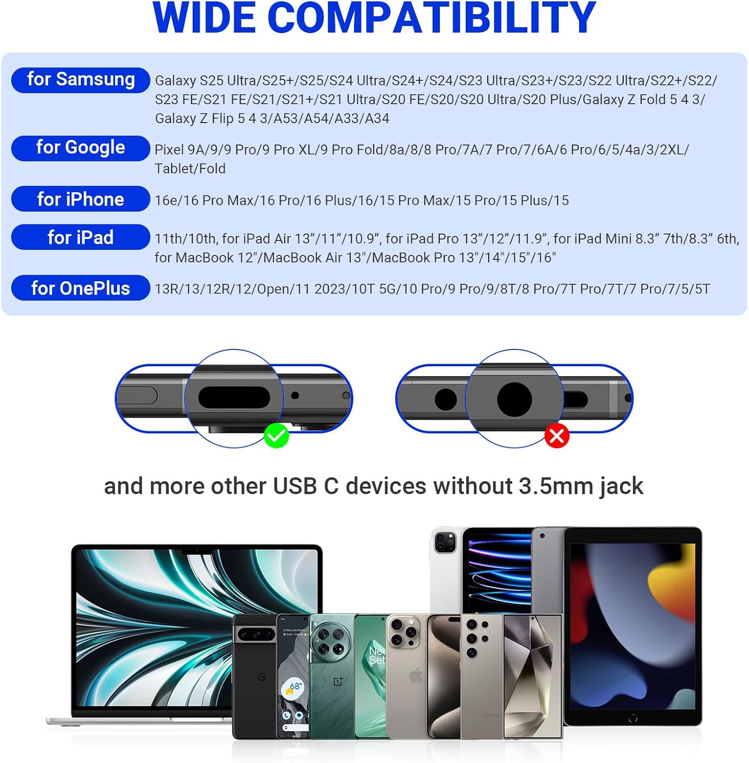 | Compatible Devices | Cellphones, Desktops, Laptops, Tablets, for Samsung Galaxy S26 Ultra/ S26+/ S26/ S25 FE/ S25 edge/ S25 Ultra/ S25+/ S25/ S24 Ultra/ S24+/ S24/ S24 FE/ S23 Fe/ S23 Ultra/ S23 Plus/ S23/ S22/ S22+/ S22 Ultra/ S21 Fe/ S21/ S21 Plus/ S21 Ultra/ S20 FE/ S20/ S20+/ S20 Ultra/ Note 20/ Note 20 Ultra/ Note 10/ Tab S10 Ultra/ Tab A9+/ Tab S10+/ Tab S9/ Tab S6 lite/ A56/ A36/ A26/ A35/ A54/ A53/ A16/ A33/ A90(5G), Z Fold 7/ 6/ 5/ 4/ 3, Z Flip 7 FE/ 7/ 6/ 5/ 4/ 3; for iPhone 17e/17 Pro Max/17 Pro/Air/17/16e/16 Pro Max/16 Pro/16 Plus/16/15 Pro Max/15 Pro/15 Plus/15, for MacBook/ MacBook Pro/ MacBook Air, For iPad 11th/10th Gen (2022), For iPad Pro M4 2025/11"/13" (2024)/6th Gen (2022)/5th Gen (2021)/4th Gen (2020)/3th Gen (2018), For iPad Air M3/M2/10.9" 5th Gen/ 10.9" 4th Gen, For iPad Mini 7/6; for Google Pixel 10a/ 10 Pro/ 10 Pro Fold/ 10 Pro XL/ 10/ 9A/ 9/ 9 Pro/ 9 Pro XL/ 9 Pro Fold/ 8A/ 8 Pro/ 8/ Fold/ Tablet/ 7/ 7 Pro/ 7A/ 6/ 6 Pro/ 6A/ 5/ 4/ 4XL/ 3/ 3XL/ 2XL;for Oneplus 15R/15/13R/13/12R/12/Open/Pad/11/10T/10/10 Pro/9/9 Pro/Nord/Nord 2/8/8 Pro/8T/7/7T/7 Pro/7T Pro/6/6T;for Moto Razr 5G/Edge |